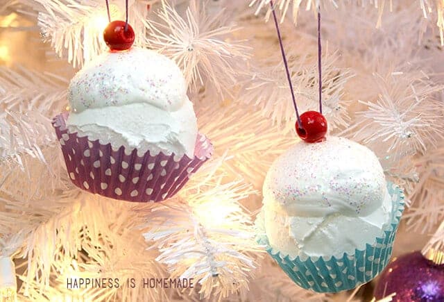 Third graders decorate round ornaments to look like cupcakes using paint, puffy paint, and glitter. These playful ornaments are perfect for kids who enjoy pretend baking and creative decorating.