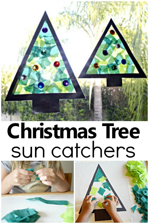 Kids cut and layer paper triangles or handprint shapes to build a Christmas tree picture. Add stickers, sequins, or paper circles for ornaments and a gold star at the top.